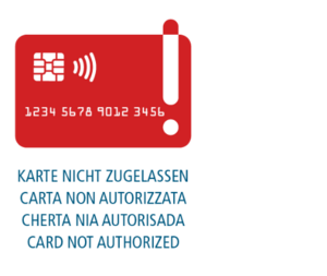 - Karten wie American Express oder Diners Club werden vom System nicht akzeptiert
